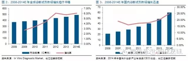 目前,國內體外診斷行業(IVD,In-Vitro Diagnostics)正逐步崛起。相對于國外成熟市場,國內呈現基數小、增速快的特點。受醫保控費影響,國內醫療機構15%藥品加成逐步取消,診斷等醫療項目“此消彼長”。我們認為IVD行業有望受益于醫改的大趨勢,長時間保持較快的成長速度。