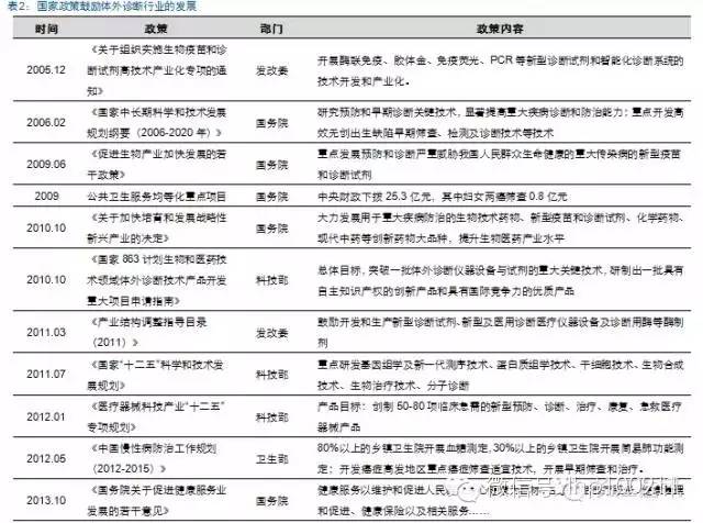 政策層面,自2005年12月發改委發布《關于組織實施生物疫苗和診斷試劑高技術產業化專項的通知》以來,國家對包括體外診斷在內的生物高新技術一直持鼓勵、支持態度。9年間發改委、國務院、科技部、衛生部等部門頒布相關支持文件十余個。沐浴政策春風,有助于體外診斷行業整體的快速發展。
