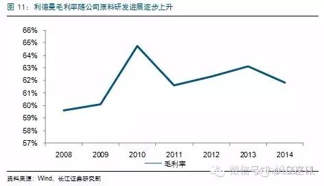 目前國內各大診斷試劑龍頭均加大原料研發力度,掘取上游原料毛利。如利德曼自上市以來一系列諸如乙肝表面抗原、乙肝e抗體、甲狀腺球蛋白原料的研發成功,獲得上游原料利潤溢價,促使公司毛利不斷提升。至2014年,公司毛利率61.83%。(2011年公司上市,2010年毛利率相對較高)