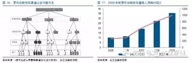 目前我國體外診斷試劑生產企業約300~400 家,其中規模以上企業近200 家,但年銷售收入過億元的企業僅約20 家,企業普遍規模小、品種少。而各下游單位或組織較為分散且需求不同,因此采用直銷渠道營銷產品的成本相對較高,企業往往選擇成本相對較低的代理商模式。即使規模大如羅氏診斷,其進入中國后最早選擇的依舊是總代理為主,2008年后才慢慢介入直營團隊。