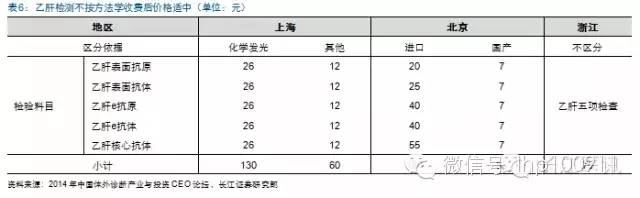 醫院保障收入的需要:在醫藥控費的背景下,醫院以藥養醫的模式面臨轉型,新的增收渠道是醫院必須考慮的問題。價格并不虛高的體外診斷產品具備一定的抗政策干擾能力,是理想的增收手段,且技術更先進的檢驗方法收費更高,同樣的檢驗項目,化學發光比普通酶聯的收費要高1-3倍,醫院自然更傾向于使用。