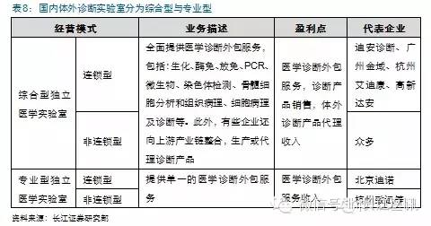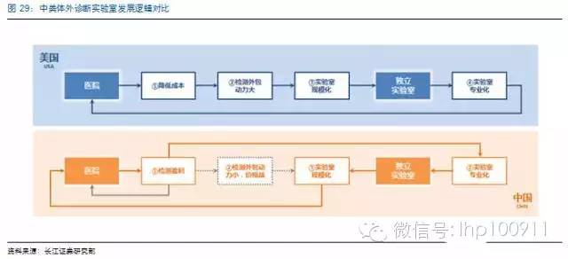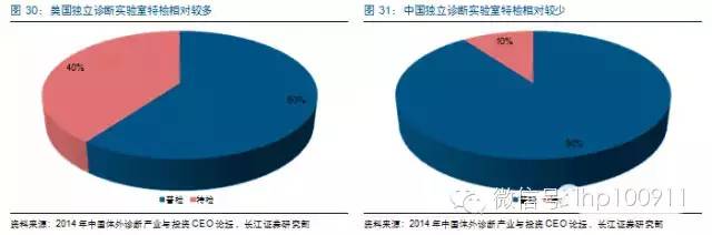 下游:消費主體的多樣性決定,全面解決方案是核心競爭力。地市級及以下醫院因資金有限及對高端檢測技術的需求,將是未來國產進口替代的理想陣地。獨立診斷試驗室因醫院盈利需求,發展模式與國外略有不同,專業化的服務及特檢項目有望成突破點。總體來看,能夠提供全面解決方案的IVD企業具備核心競爭力。
