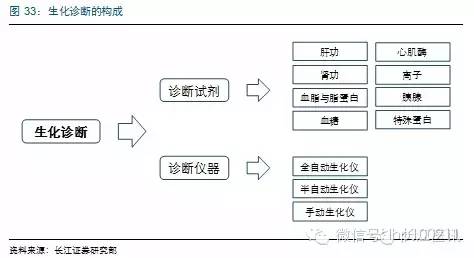 中游:生產、渠道、銷售政策等因素導致強者恒強。生產環節,生化診斷及酶聯免疫診斷短期內仍將是市場主流,化學發光對酶聯免疫替代將是趨勢,龍頭企業有先發優勢。渠道環節,行業內多采用“儀器+試劑”捆綁代理銷售模式,大型企業有較強的議價能力。銷售環節,采購政策逐步清晰,不按方法學定價的省統一招標改革后,政策對國產傾斜,行業格局有望重新洗牌。
