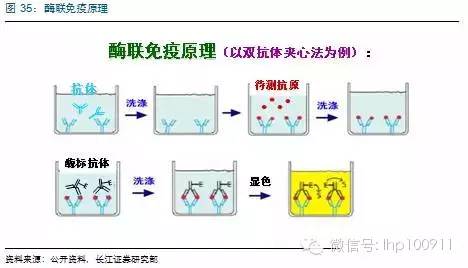 酶聯免疫標記物為酶,常用來檢測某一抗原或抗體。試劑具有成本低、可大規模操作等特點,是目前國內免疫診斷試劑中的主流。