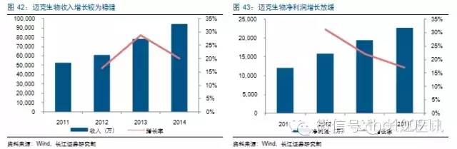 公司生化檢測起步,現有127項生化診斷試劑,3種11規格全自動生化分析儀,涵蓋11類生化檢測項目。技術儲備豐富,在研診斷酶14項、抗原抗體11項目、生化試劑7項、免疫試劑14項(其中化學發光10項)、配套化學發光儀及POCT設備4項目,未來不排除進軍分子檢測領域。近年公司生化檢測增長迅速,三年CAGR在40%以上,未來若外延布局免疫、分子等高端領域,想象空間廣闊。(市值:美康128億元,達安301億元;2014年凈利潤:美康1.37億元,達安1.59億元;市占率:美康2.13%,達安2.44%)。