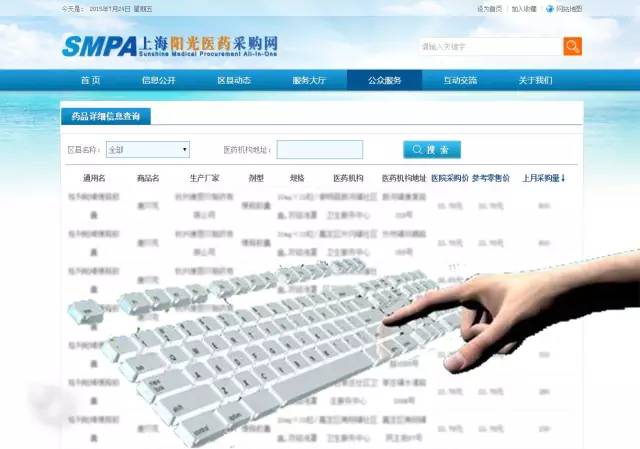 聽說了沒?無論你在不在上海,只要敲敲鍵盤,就能看到本市公立醫(yī)院和醫(yī)保定點醫(yī)院采購藥品的價格,輸入藥品通用名,馬上會顯示該藥品各生產(chǎn)企業(yè)在不同醫(yī)藥機構(gòu)采購價格、銷售價格、開戶情況,如果是基藥還可以顯示采購明細,還是免費的哦!