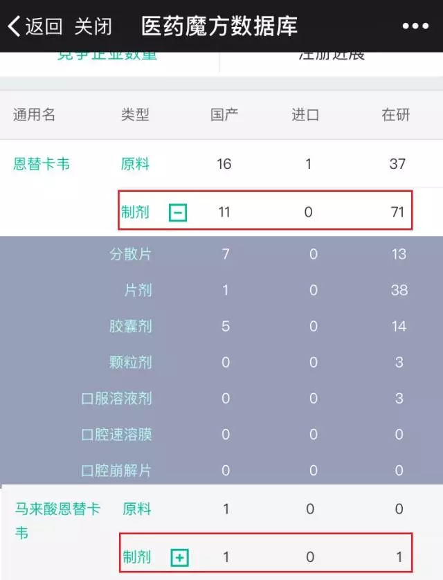 大的市場空間吸引眾多企業競相仿制恩替卡韋。當前國內已有11家企業的恩替卡韋上市(正大天晴同時擁有恩替卡韋和馬來酸恩替卡韋),在研廠家更是多達71家。