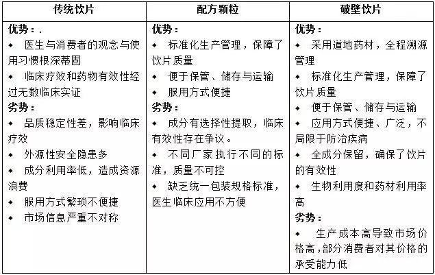 中康資訊研究報告指出,在藥物基本質量要求上,新型飲片明顯優于傳統飲片,尤其是破壁飲片。與傳統飲片相比,破壁飲片和配方顆粒在穩定性、安全性、可控性上有著一定優勢;與配方顆粒相比,破壁飲片的全成分保留,使其有效性上更能得以保障。第三代破壁飲片的優勢高于第一代傳統飲片與第二代配方顆粒。