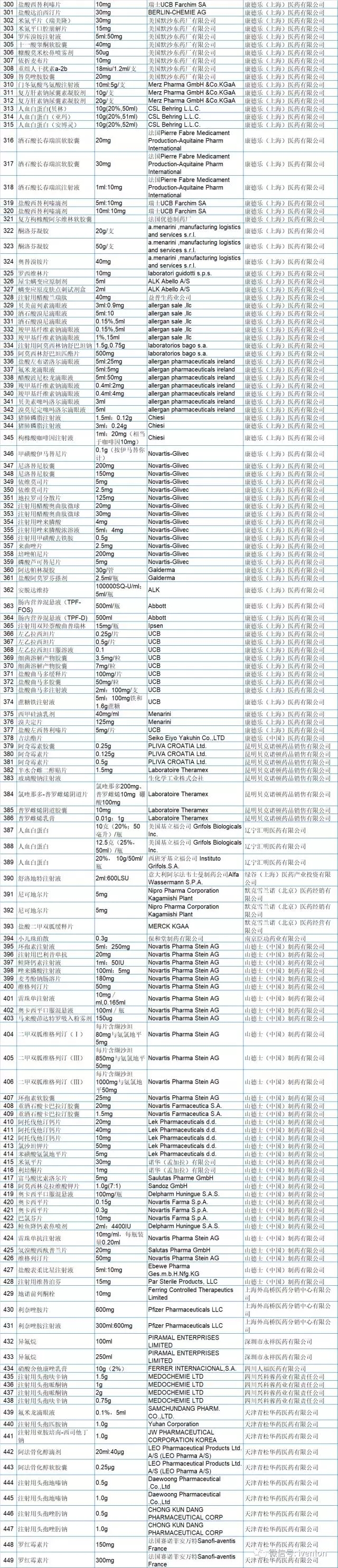 附表包含如下兩表內容:1.進口藥品代理品種和企業公示名單(第003號); 2.進口藥品代理品種和企業公示名單(第001號和第002號修正版)