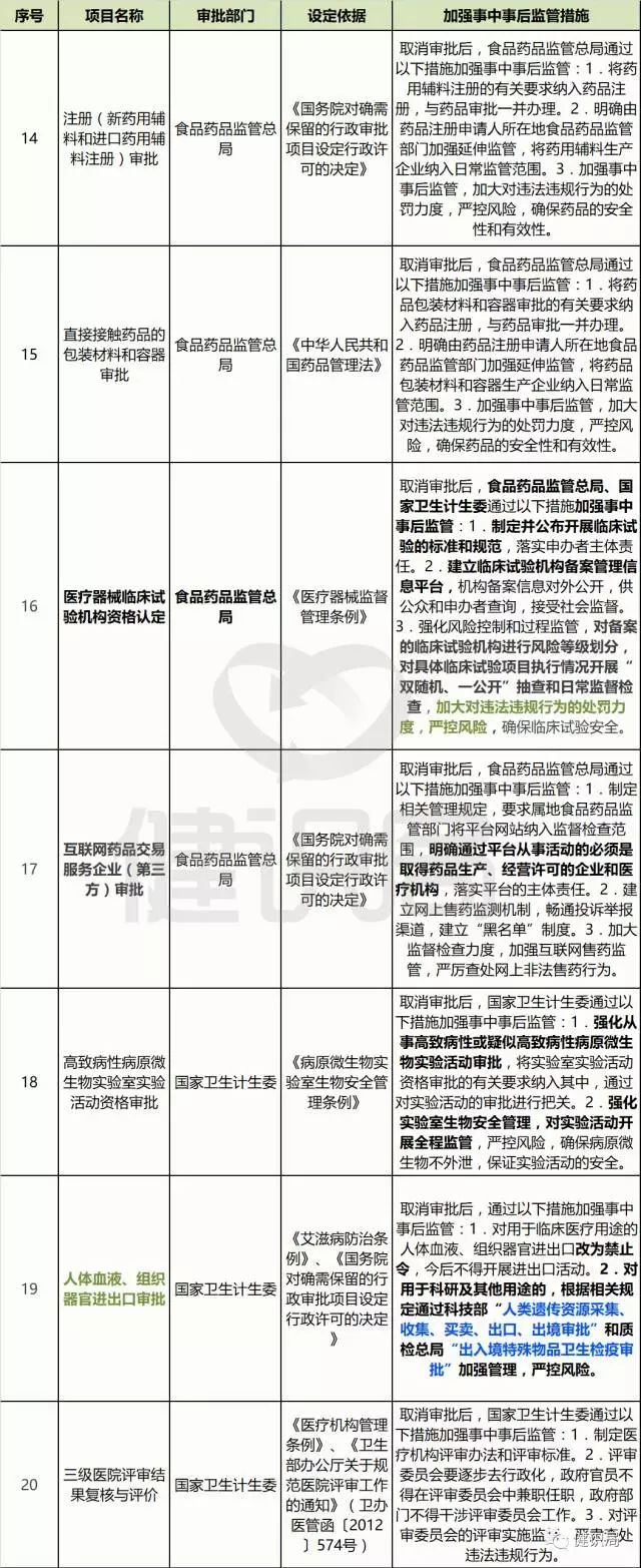 除了醫藥電商A證,《國務院關于取消一批行政許可事項的決定》(國發〔2017〕46號)還有6項內容針對醫藥領域。你最關心的醫療器械臨床試驗機構資格認定、人體血液、組織器官進出口審批,都在其中
