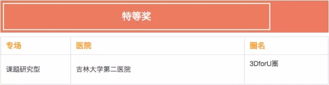 吉林大學第二醫院的“3D for U圈”榮獲特等獎;復旦大學附屬中山醫院、中國人民解放軍總醫院、鄭州大學第一附屬醫院等醫院獲課題研究型一等獎;河南省人民醫院、大連醫科大學附屬第一醫院、商丘市第一人民醫院等醫院獲得三級綜合場一等獎;深圳市中醫院、復旦大學附屬華山醫院北院、中國醫科大學附屬盛京醫院等醫院獲得三級護理一等獎……成都市成飛醫院、勝利油田中心醫院和長春市兒童醫院等醫院獲專科、企業與民營醫院專場一等獎。詳細名單附后。
