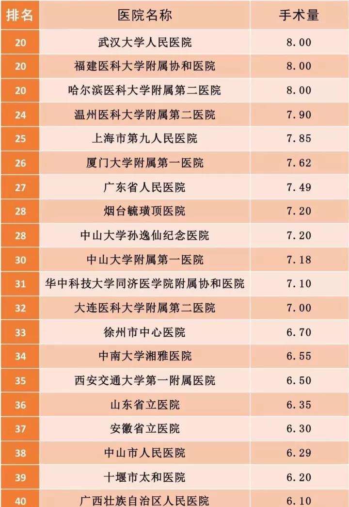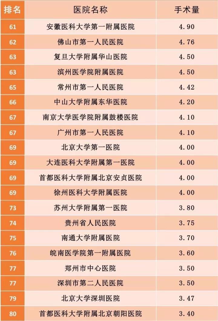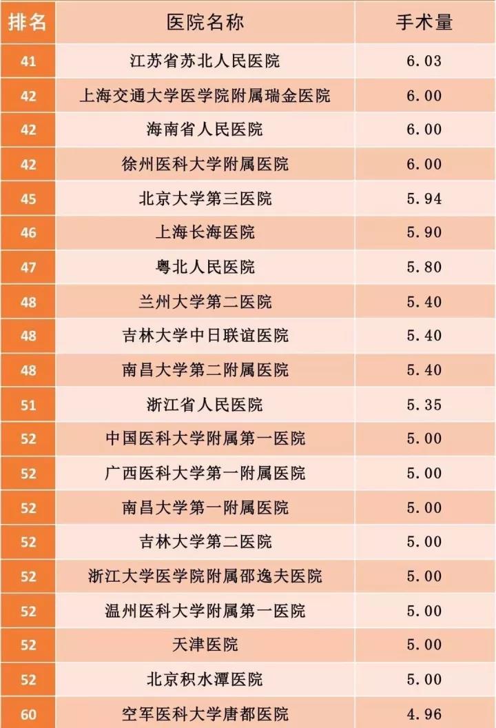 4.數以萬計的手術量背后,是醫護人員巨大的工作量和身心壓力。在醫療界,手術醫生、麻醉醫生連臺手術后累倒在地,席地而臥,甚至發生猝死、自殺的報道卻始終存在。我們希望,榜單上手術量巨大的醫院管理者們請關注相關醫護人員的健康狀況,避免悲劇發生!