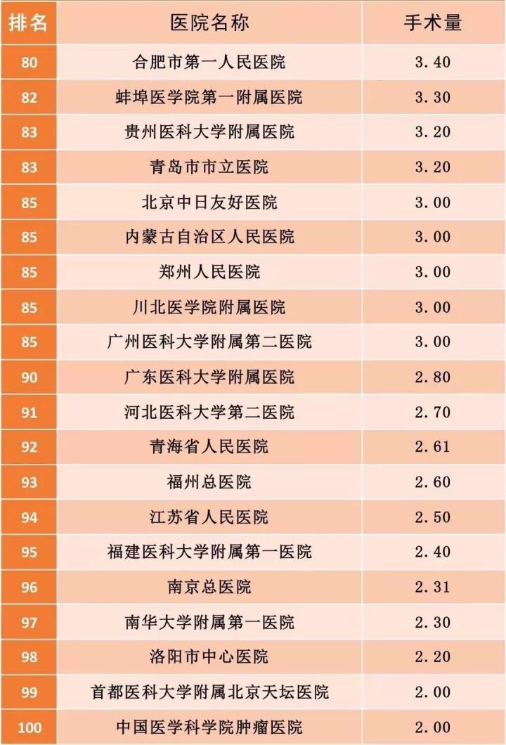 2017中國綜合醫院手術量TOP100排行榜出爐!
