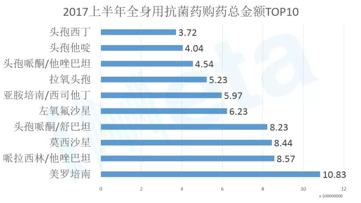 2017全身抗感染用藥前10名