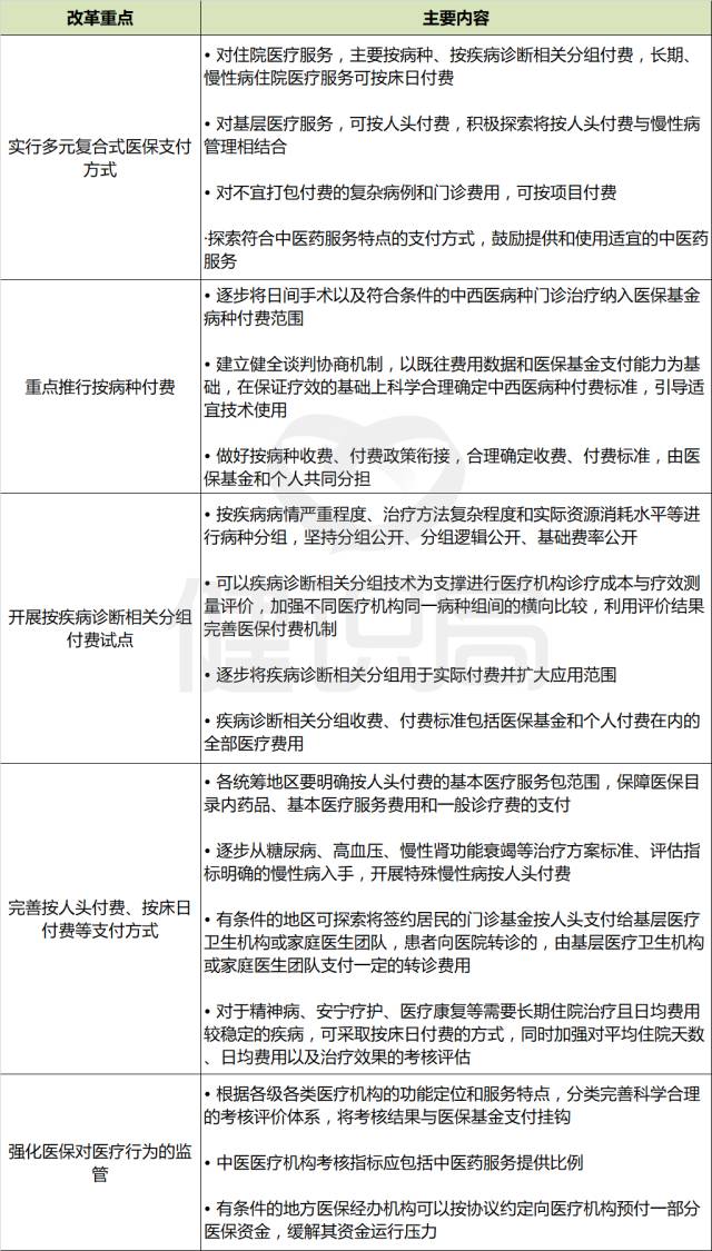 最后,健識君梳理了國務院關于下一步醫保支付改革的具體部署,以饗諸君