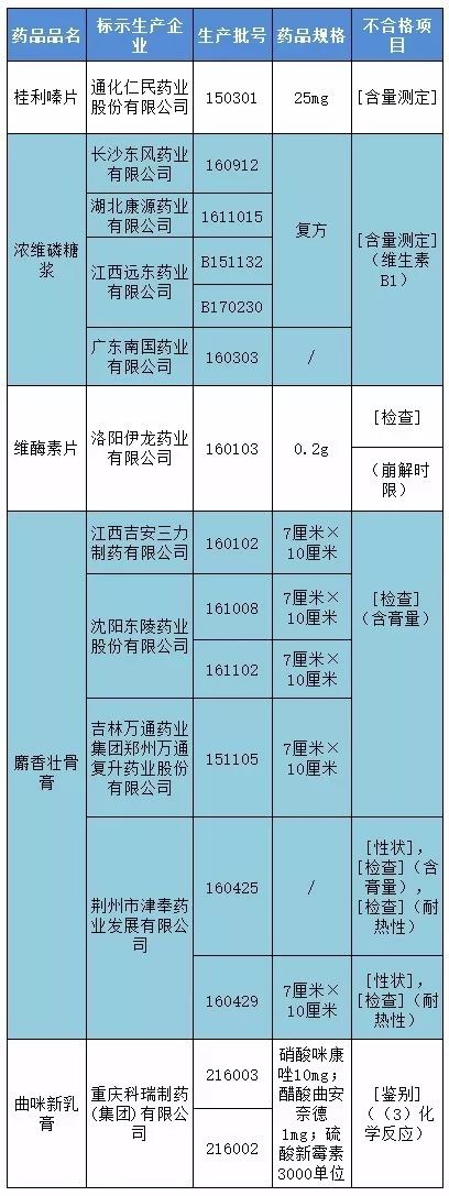 ▍15批次藥品抽檢不合格
