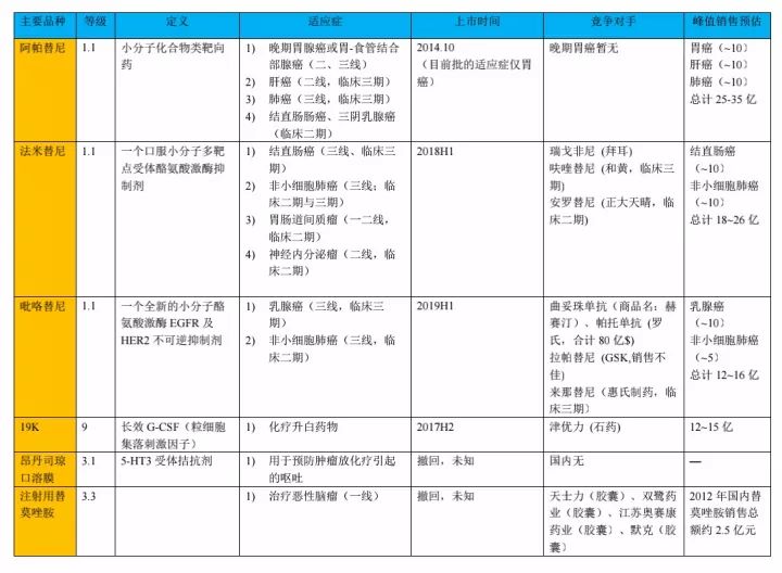 恒瑞醫(yī)藥現(xiàn)有以及未來兩到三年上市品種