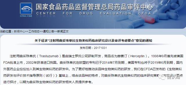 重磅藥物赫賽汀專利臨期,CDE廣發(fā)“英雄帖”!