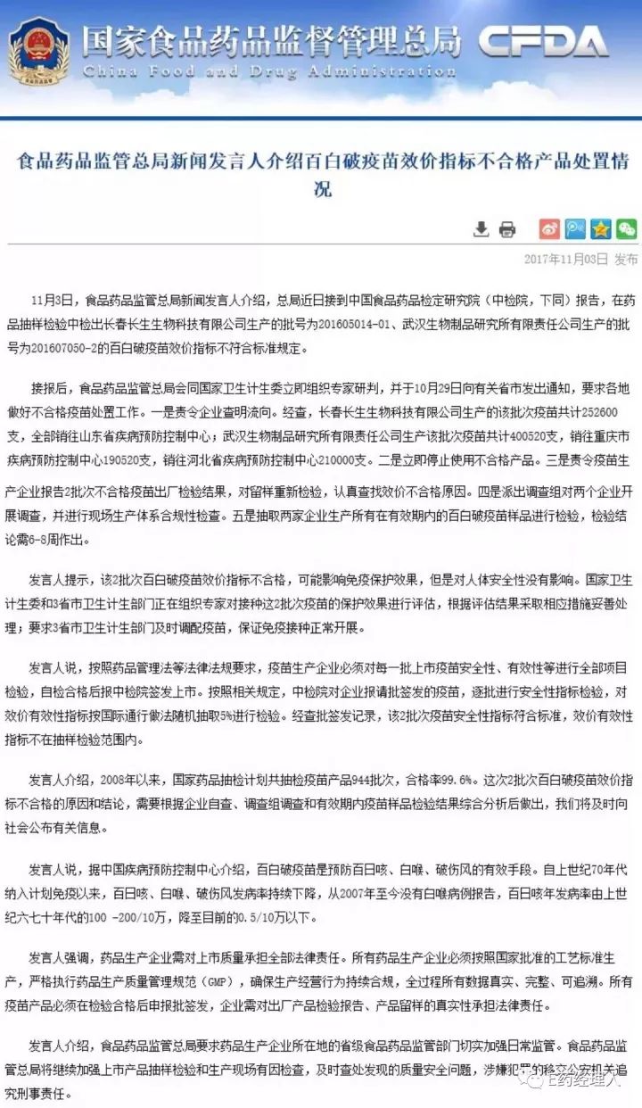 截止目前,上市公司長生生物還未發布任何關于252600支不合格疫苗處置情況的公告。