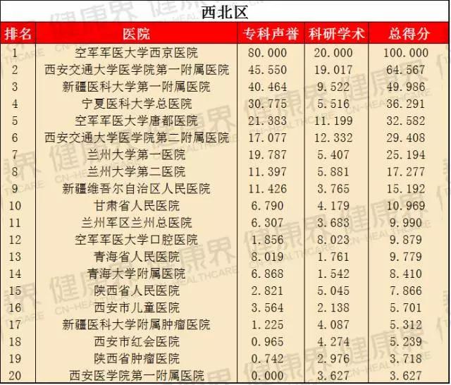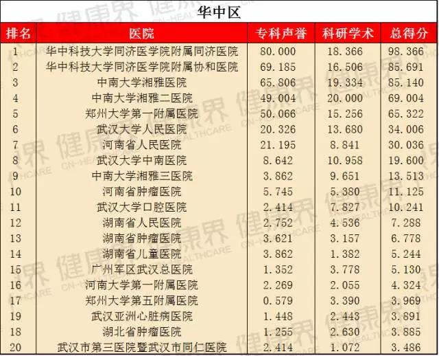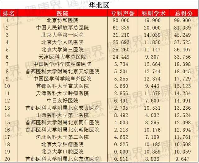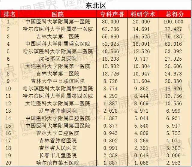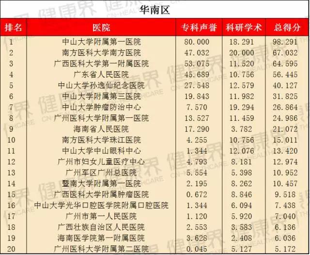 該榜單在2015年首次亮相,就成為最大亮點,并引發廣泛關注。它將東北區、華北區、華東區、華南區等7個區域醫院分別作為獨立單元,評選出各地區醫院綜合實力排名,旨在提高區域醫療水平,同時便于區域民眾詢醫就診。這意味著,看病不一定要去全國最好的醫院,在自己所處區域也能找到好醫院。