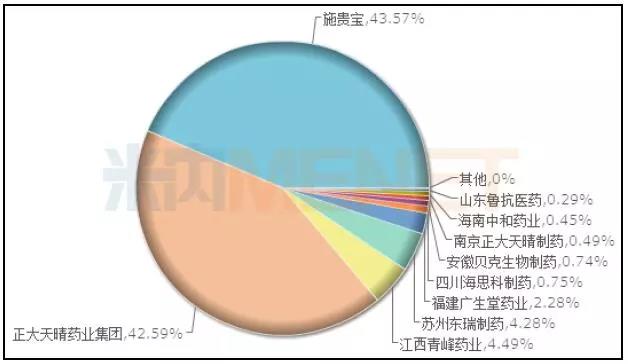 潤眾(恩替卡韋)分散片是由中國生物制藥下屬正大天晴研制的治療乙肝新藥,2010年2月獲得新藥證書和生產批件,是國內首家獲準生產該制劑的企業,2010年3月推出市場,2017年前三季度的銷售額248,747萬元,同比增長6.2%。該產品為新一代鳥嘌呤核苷類似物口服藥,主要用于治療乙肝病毒感染,其抑制病毒復制的能力強大,并擁有耐藥率極低的特點。據米內網數據顯示,在中國城市公立醫院、縣級公立醫院、城市社區及鄉鎮衛生院(簡稱中國公立醫療機構)終端中,2016年潤眾(恩替卡韋)分散片的市場份額已逼近原研廠家,達42.59%,位居第二。