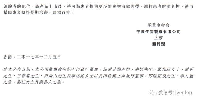 該產(chǎn)品是國內(nèi)首個(gè)按照「 仿制藥品質(zhì)和療效一致性評價(jià) 」(「一致性評價(jià) 」)標(biāo)準(zhǔn)完成生物等效性研究,并且通過與原研藥進(jìn)行頭對頭對照臨床試驗(yàn)的仿制藥。本集團(tuán)成為第一家通過一致性評價(jià)的 企業(yè)。