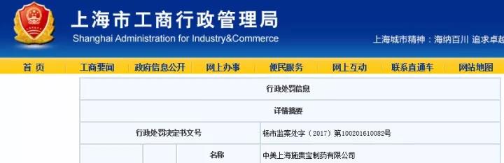 11月27日,上海市工商局發布行政處罰信息。中美上海施貴寶制藥有限公司(以下簡稱:中美施貴寶),被判違法,受處罰。