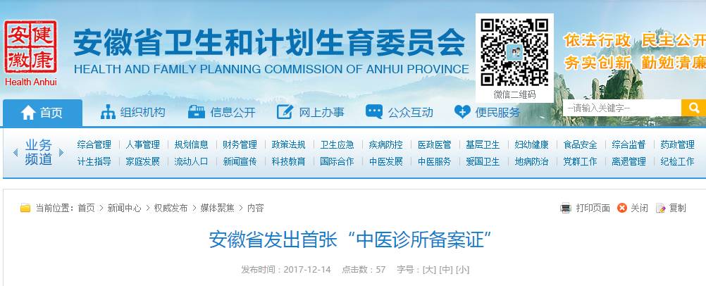 12月1日,中醫診所備案制正式實施,僅僅過了4天,安徽省發出第一張“中醫診所備案證”。