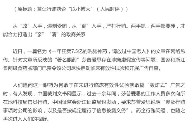 人民日報:嚴打行賄醫藥企業,讓行賄代價慘重
