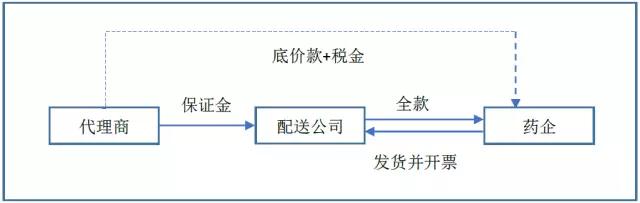 為保證“票、貨、款”一致,商業(yè)配送公司須直接支付對(duì)應(yīng)的預(yù)付款。有些地區(qū)相對(duì)較弱的配送公司為留住或搶下代理商,主動(dòng)墊付預(yù)付款;而一些較強(qiáng)勢(shì)的配送公司則是要代理商承擔(dān)該款項(xiàng),承擔(dān)的形式主要包括代理商個(gè)人/公司支付履約保證金給配送公司或直接支付款項(xiàng)給藥企(一般是體系外賬戶,支付金額為底價(jià)款加稅金)。