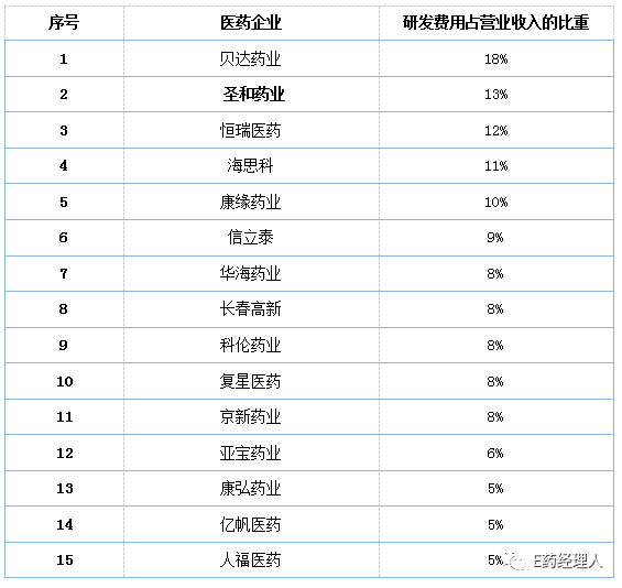 2015年,圣和藥業投入研發費用占銷售收入的比例7.1%;2016年,公司投入研發費用占銷售收入比例達到8.3%;2017年上半年圣和藥業研發投入占比營業收入高達13%。