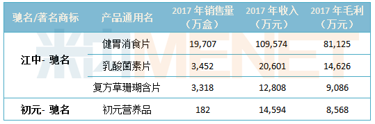 表2:公司“江中”及“初元”2個(gè)馳名商標(biāo)2017年的銷(xiāo)售情況