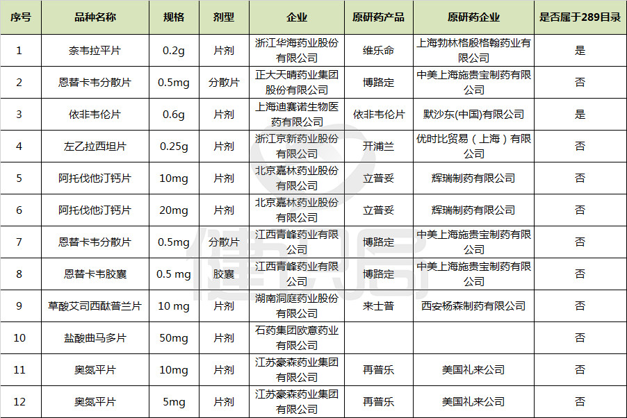 健識局注意到,此次通過一致評價的仿制藥,共計9個品種12個品規。