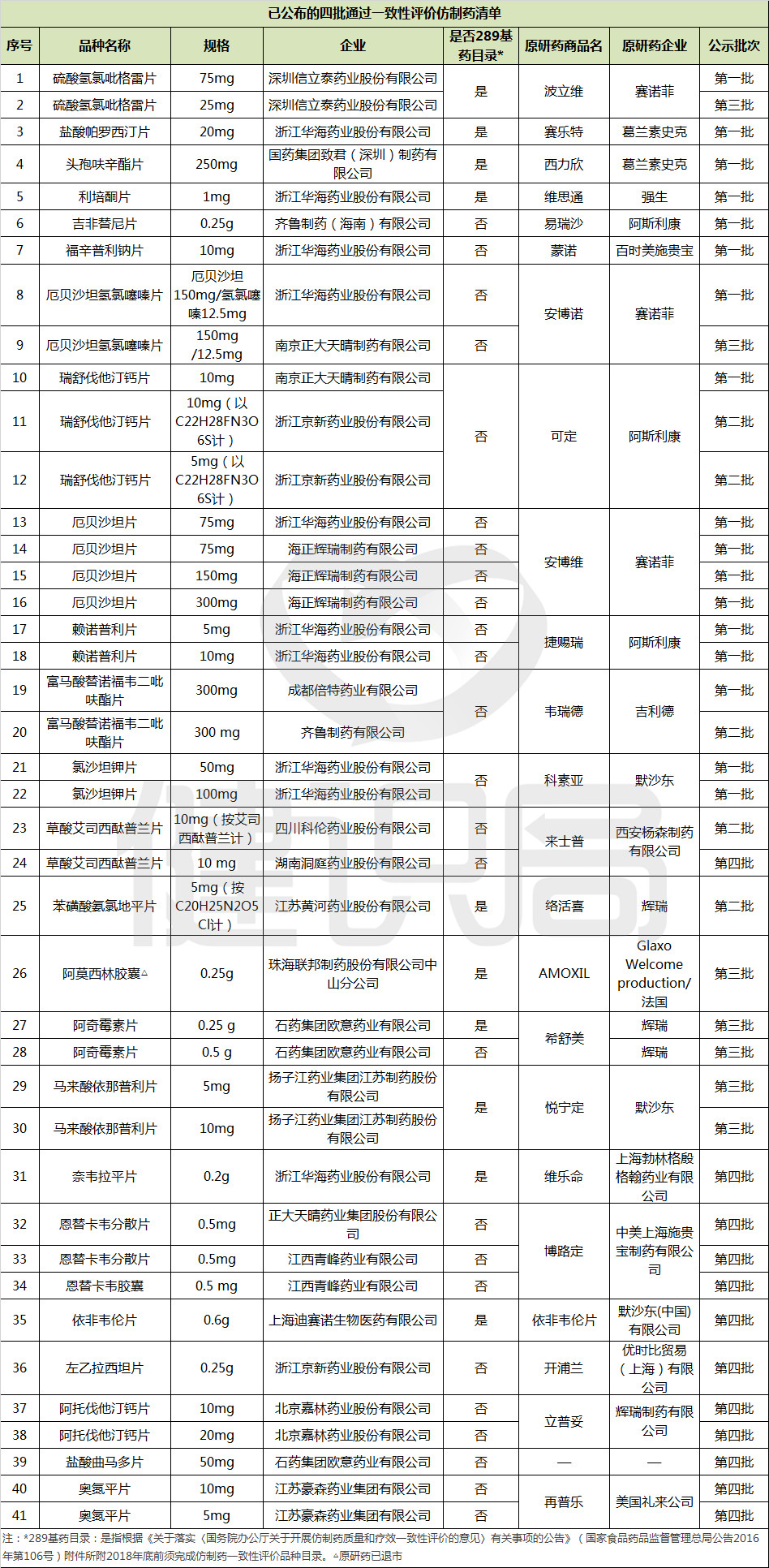 另據健識君統計,前四批已通過一致性評價的41個品規中,289個基藥目錄中有12個品規,非289個基藥目錄中有29個品規。目前,這些品種均有國內廠家通過了仿制藥一致性評價,因此未來具有替代原研藥的較大空間。